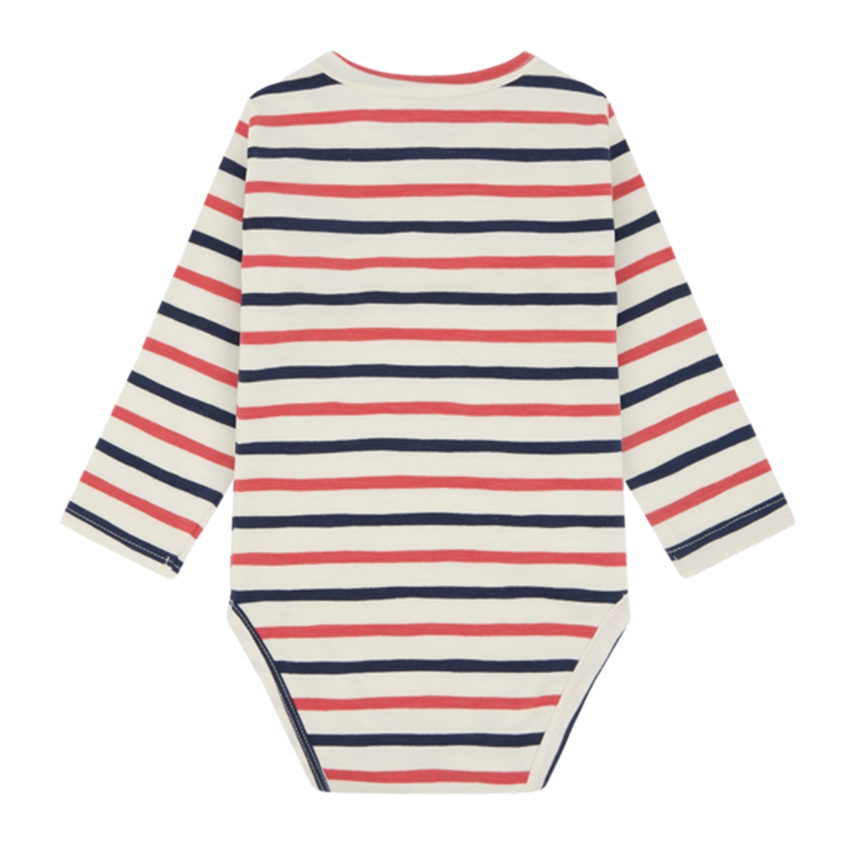 Das klassische Streifen-Design sorgt für einen zeitlosen Look, der sich perfekt kombinieren lässt. Dank des praktischen Knopfverschlusses an der Schulter lässt sich der Body leicht an- und ausziehen – ideal für Eltern, die Wert auf Funktionalität legen. Die hochwertige Verarbeitung garantiert Langlebigkeit, während der angenehme Stoff für maximalen Tragekomfort sorgt.