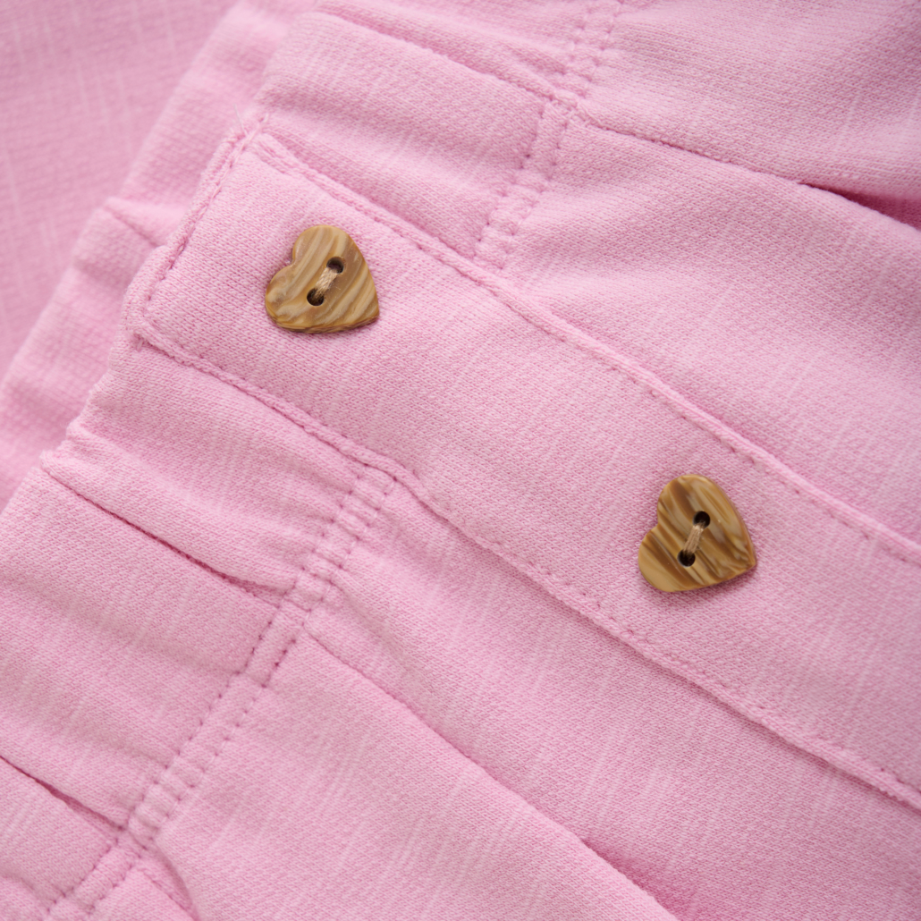 Diese schöne, schlichte Hose von Minymo ist die perfekte Wahl für Mädchen, die Komfort und Stil lieben. Hergestellt aus einer weichen Baumwollmischung, bietet die Hose ein angenehmes Tragegefühl auf der Haut, ideal für den ganzen Tag. Der Gummizug in der Taille und an den Knöcheln sorgt für eine bequeme und flexible Passform, die viel Bewegungsfreiheit lässt, ohne einzuengen. Ein besonderes Highlight sind die herzförmigen Knöpfe aus Holzimitat auf der Vorderseite, die der Hose eine charmante und verspielte Note verleihen. Das klassische Design lässt sich vielseitig kombinieren und ist sowohl für den Alltag als auch für besondere Anlässe geeignet. Mit dem GOTS-Zertifikat (organic CERES-0366) garantiert die Hose zudem eine umweltfreundliche und nachhaltige Herstellung. Ein Must-have für jede Mädchen-Garderobe, das sowohl modisch als auch bequem ist.
